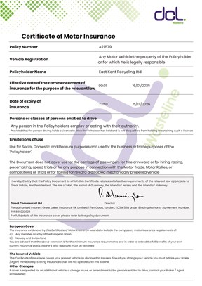 Waste Carriers Certificate