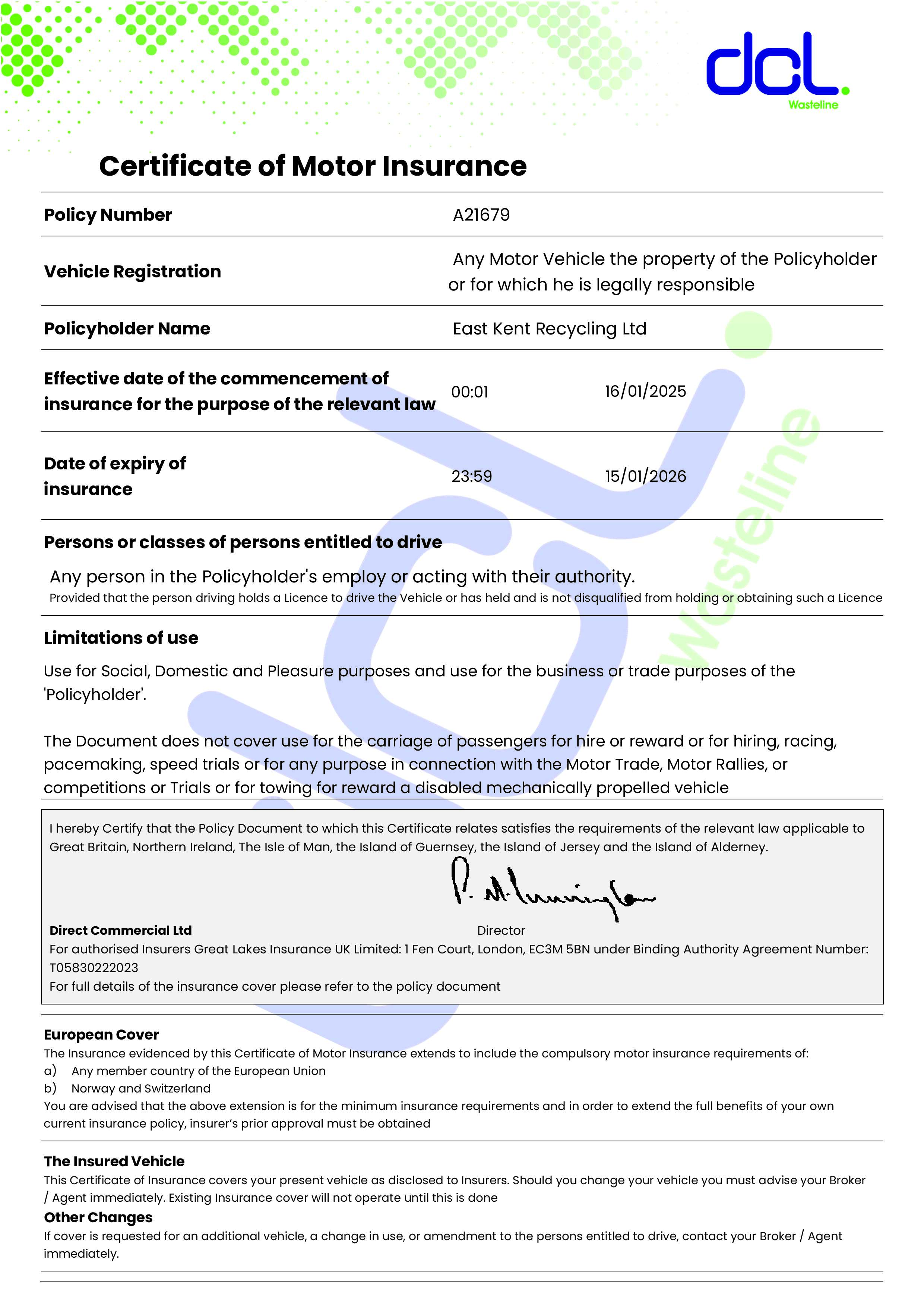 Insurance Certificate