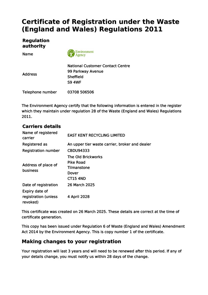Waste Carriers Certificate